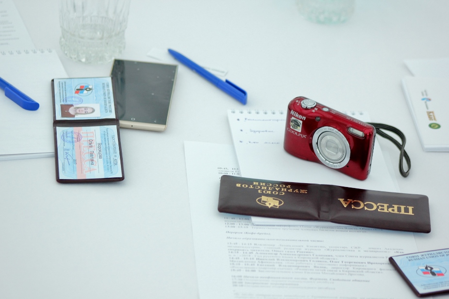 — А в чем вопрос? Вы тогда пишите, что это ваше личное мнение. Я вам вручу удостоверение члена союза журналистов, чтобы вы стали настоящим журналистом и ответственнее относились к высказываниям, в том числе в своим личным... в своем блоге, — сказал Васильев и передал Быкасову корочку.
