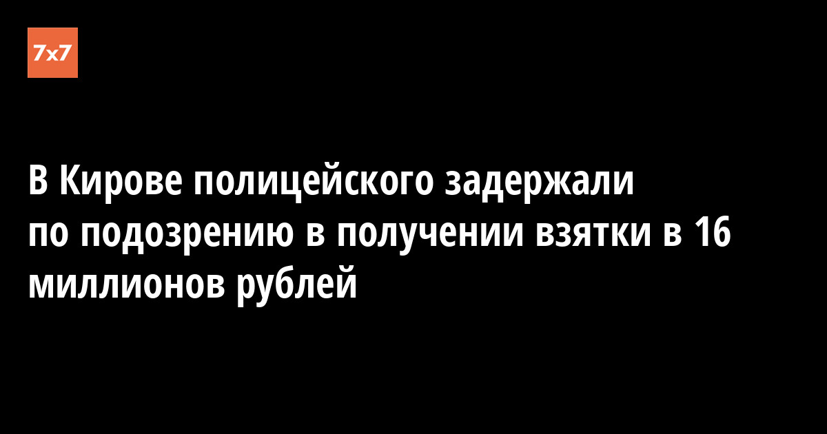 В Кирове полицейского задержали по подозрению в получении взятки в 16 миллионов рублей