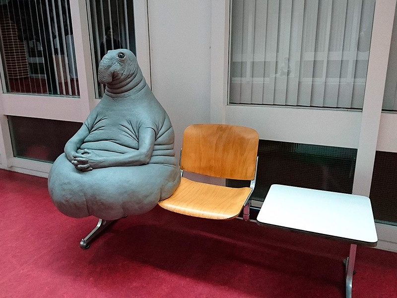 Напомним, скульптура Ждуна, которого интернет-пользователи, особенно российские, с удовольствием вставляют в картины и фотографии узнаваемых мест, была создана Маргрит ван Брифорт в 2016 году для Лейденского университета (Нидерланды). Официальное название этой скульптуры звучит как Homunculus Loxodontus. Художница говорит, что ее вдохновили пациенты, терпеливо сидящие в очереди.