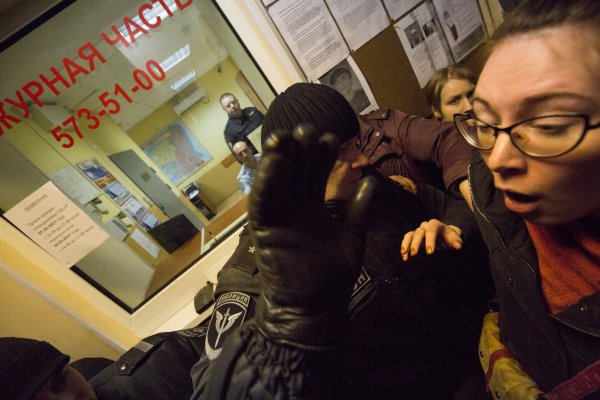У начальника дежурной части тряслись руки. Потому что постоянно был гул, мы смеялись, фотографировались, пытались добиваться своих прав, то есть постоянно что-то говорили, делали. У этого полицейского, дежурного, может, начался стресс какой-то, но у него дрожали руки.