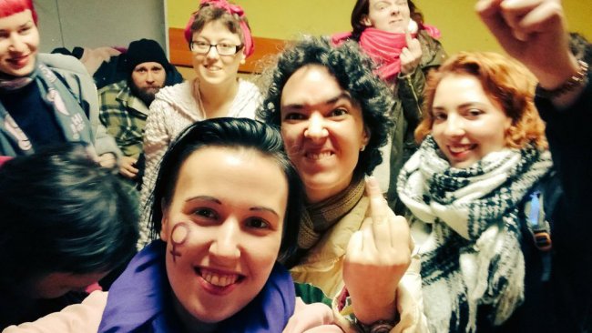 Все друг к другу проявляли такую солидарность и поддержку, с такой любовью и нежностью относились, это прям очень здорово. Девочки из оргкомитета говорили, что он состоял из разных людей. Можно даже понять по фейсбуку, что есть различные феминистские группы, которые друг с другом не общаются, ругаются. А там вроде присутствовали даже все, и, в общем, были приняты решения, что всё-таки все вместе, что есть общие задачи, общая повестка. И на мой взгляд, то, что люди, которые все время в состоянии некой войны друг с другом, организовали такую массовую и прекрасную дружескую акцию, — это очень круто, я надеюсь, что это и дальше продолжится.