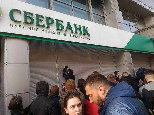 «Это центральный офис "Сбербанка" России, мы его тотально блокируем, мы закладываем кирпичом входы, и с этого дня он не будет работать. Постоянно мы будем расширять всю эту историю на всю Украину, на все их отделения», — цитирует «Интерфакс» депутата Верховной Рады, основателя «Гражданского корпуса "Азов"» Андрея Билецкого.