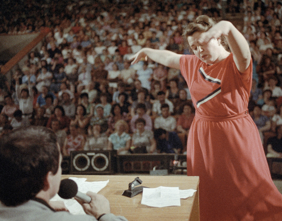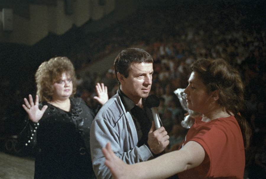 СССР. Украинская ССР. 1 января 1988 г. А.М. Кашпировский. Врач из Винницы Анатолий Михайлович Кашпировский во время проведения гипнотического сеансаФото: ТАСС «Желаем всем вам успеха в общении с Анатолием Кашпировским, несущему людям бесценный дар избавления от неизлечимых страданий и преждевременного умирания», — завывал из динамиков женский голос. В душном зале зрители рассаживались так, чтобы в нужный момент успеть быстро выбежать на сцену. Старушки дрались за места в первом ряду.