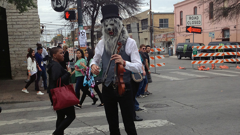Несмотря на немилосердный дождь, рядом со штаб-квартирой фестиваля — конференц-зданием Convention Center — можно наблюдать нескольких юношей и девушек почти без одежды, но с хэштегом #stripped на телах. Это флешмоб, посвященный реалити-шоу, которое компания Bravo выпустит на экраны этим летом: в первый же день участники лишатся всей одежды и (о ужас) даже смартфонов, а затем им будут возвращать по одной самой необходимой для них вещи в день. На подходе к Convention Center дорогу пересекает колонна девушек, одетых в одинаковые белоснежные чепчики и красные длинные платья, — тоже флешмоб, но посвященный премьере сериала «Рассказ служанки» по роману Маргарет Этвуд. Интересной, насыщенной жизнью живет город Остин во время фестиваля SXSW.
