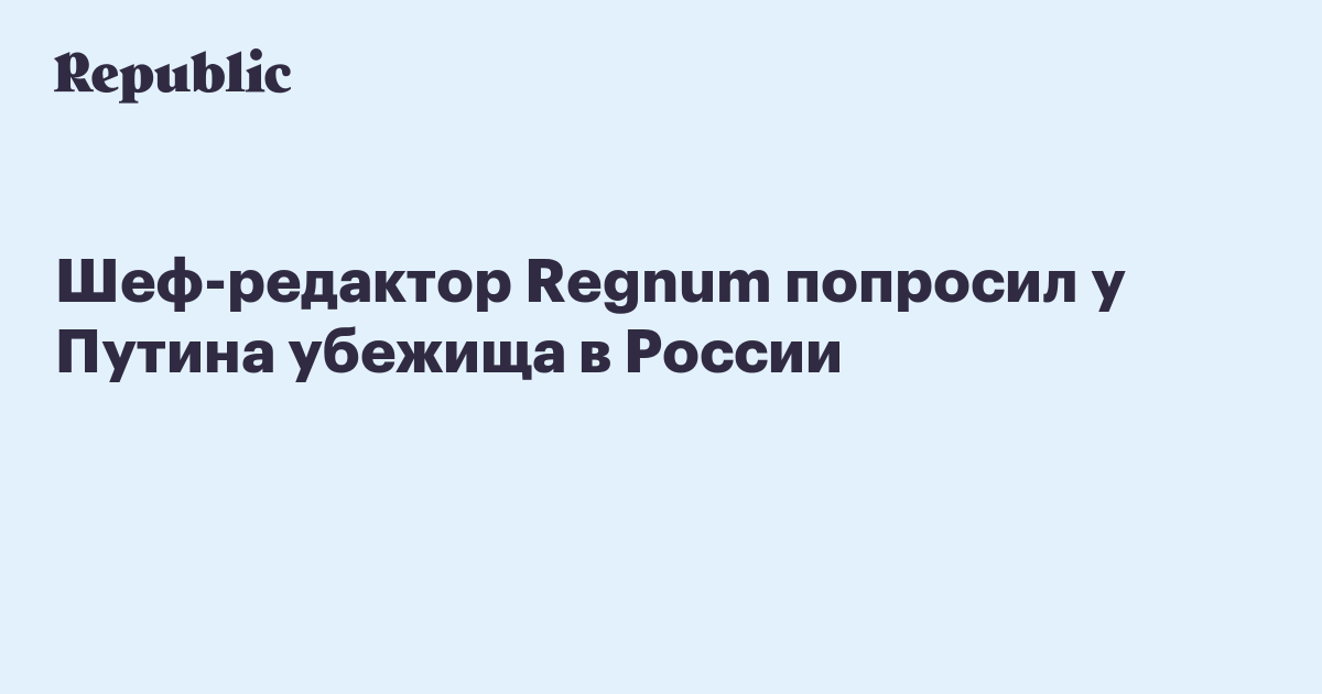 Шеф-редактор Regnum попросил у Путина убежища в России