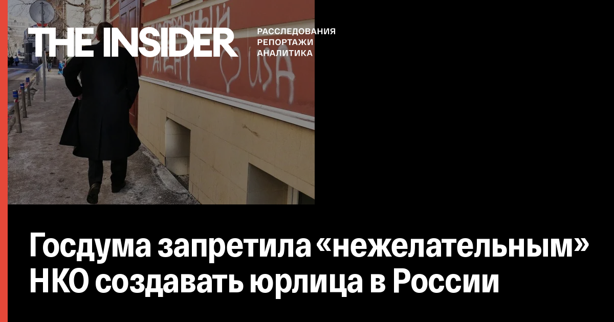 Госдума приняла в третьем чтении законопроект, который вводит полный запрет на создание юрлиц для иностранных и международных организаций, чья деятельность признана в России «нежелательной». Им также запрещено участвовать в российских юрлицах.