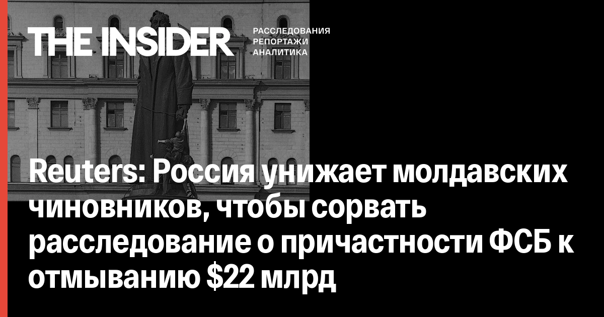 Reuters: Россия унижает молдавских чиновников, чтобы сорвать расследование о причастности ФСБ к отмыванию $22 млрд