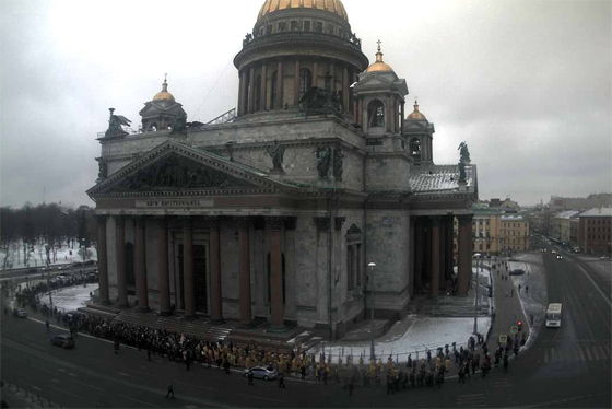 © Mobotix Webcams Russia / YouTube Крестный ход у Исаакиевского собора. Петербург, 12 февраля 2017 года Сегодня, 16 марта, Смольнинский районный суд Петербурга отказал в рассмотрении по существу административного дела по иску группы петербуржцев против распоряжения городского комитета имущественных отношений о передаче Исаакиевского собора РПЦ.