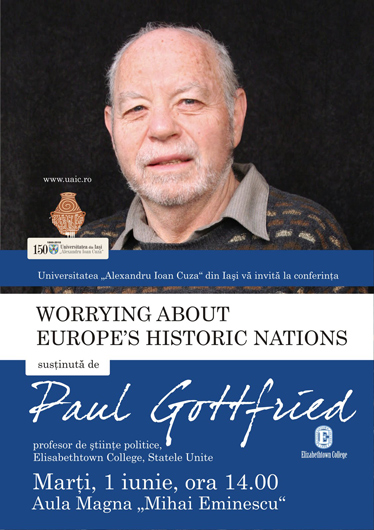 Афиша лекции Пола Готфрида «Беспокоясь об исторических нациях Европы» О таком предубеждении пишет Ханна Арендт, еще один автор, в ком сочетались «тевтонская педантичность с еврейской моральной праведностью», как однажды сказал о Готфриде его друг. Его одноклассники умны, но измучены, у него же есть в арсенале аристократическое спокойствие высокой германской культуры, которая наделяет его истинной проницательностью. На этот факт необходимо обратить внимание не потому, что данное его предубеждение хуже остальных, а потому, что впоследствии оно будет сильно влиять на его работу. Когда Готфрид нападает на «неоконсерваторов» и «нью-йоркских интеллектуалов», которых обвиняет в том, что они сломали ему карьеру и не отдали должное его интеллекту, то им движет не столько нанесенная обида, сколько бесчестие поражения от того, кого считаешь ниже себя.