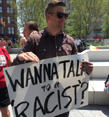 Ричард Спенсер с плакатом «Хочешь поговорить с расистом?» Тейлор добился успеха, так как сумел избежать «навязчивых идей и чудаковатости, которые, к сожалению, были свойственны американскому расизму», написал Ричард Спенсер, бывший ученик Готфрида. Он отмечает, что с «Джаредом и “Американским Ренессансом” в мейнстриме появился некоторый радикализм: он заключается в представлении идей, имеющих последствия мирового масштаба, в упаковке, которая кажется одновременно умеренной и респектабельной».