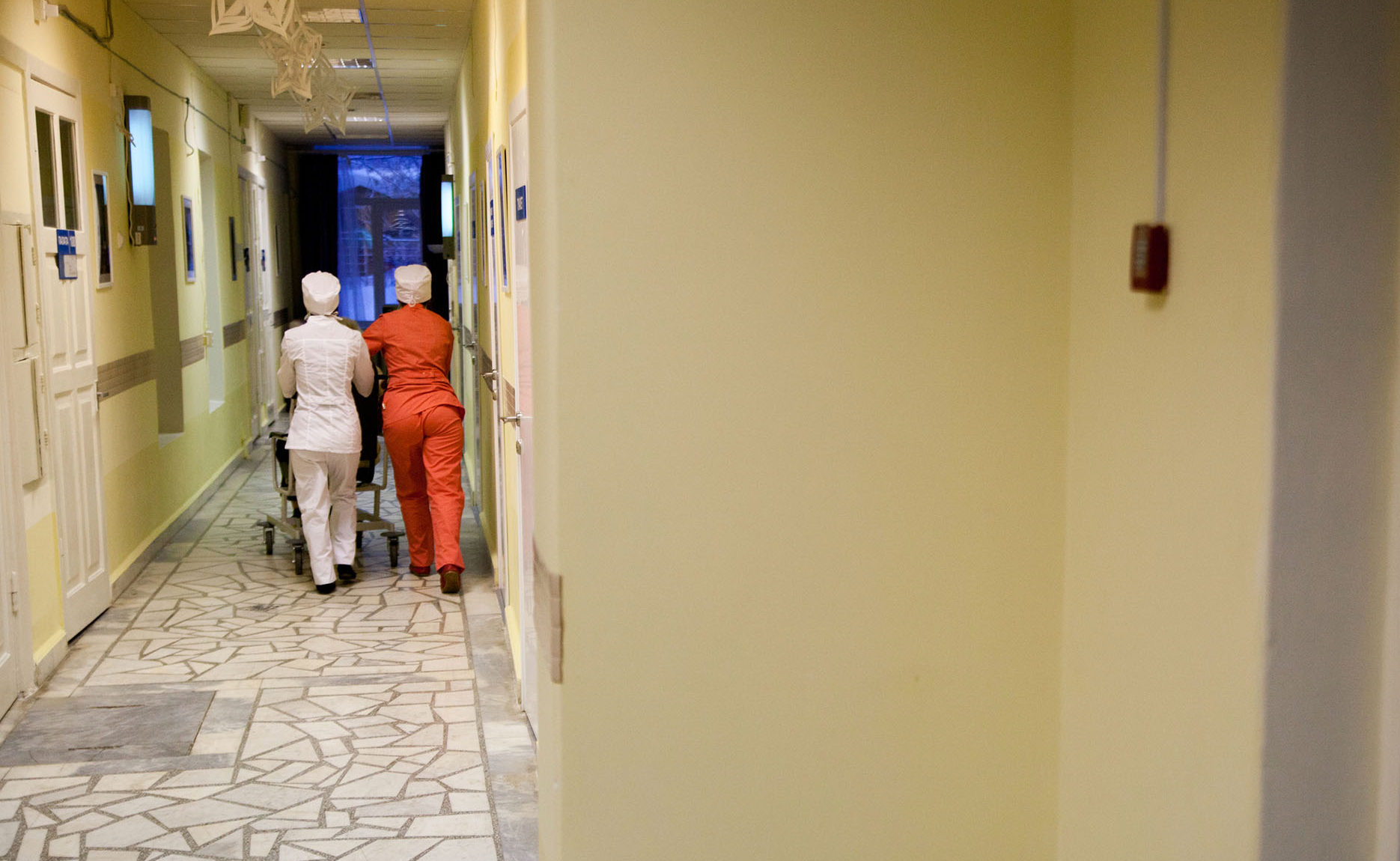 Медсестра в процедурном кабинетеФото: Федор Телков для ТД Тут Иван впервые за 15 лет вышел на улицу. Лето, +30. Невыносимо потянуло закурить, в здании хосписа было нельзя. Он попросил сигарету. Затянулся. Его провезли по двору. Солнце грело щеки, сочная трава резала глаза, где-то вдалеке маячили новые высотки… Звуки города заложили уши, Иван зажмурился. А когда открыл глаза, ничего не исчезло.
