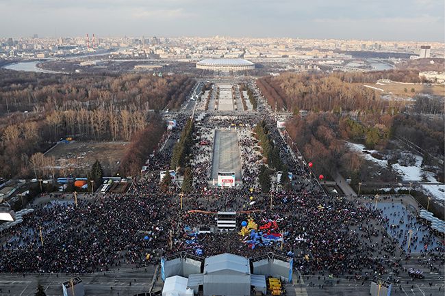 Фото: Станислав Красильников / ТАСС / Scanpix / LETA Митинг-концерт по случаю трехлетия присоединения Крыма на Воробьевых горах, 18 марта 2017 года