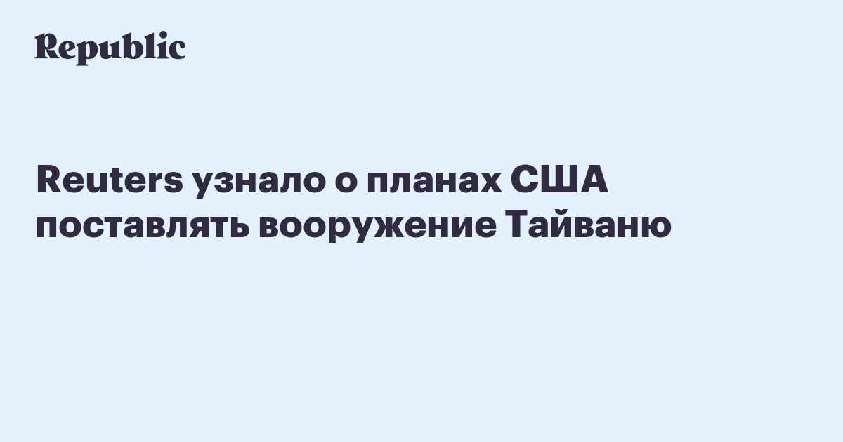 Reuters узнало о планах США поставлять вооружение Тайваню