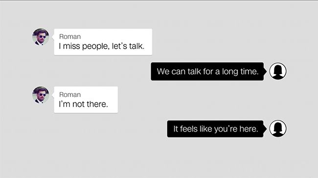 В этом действительно есть какая-то злая ирония: случилось так, что Роман погиб в автомобильной аварии, и после этого Женя решила, что для нее это вызов — разработать бот «Роман». Она собрала все его текстовые сообщения, статьи и прочие цифровые материалы, и создала бота — как мне кажется, главным образом для себя. Женя говорит, что после запуска бота она периодически ловила себя на том, что на вечеринках стоит одна в углу и пишет сообщения Роману, которого уже нет в живых. Но он отвечал… она, разумеется, понимала, что это не он, а чат-бот, но создавалось ощущение, будто он все еще здесь.