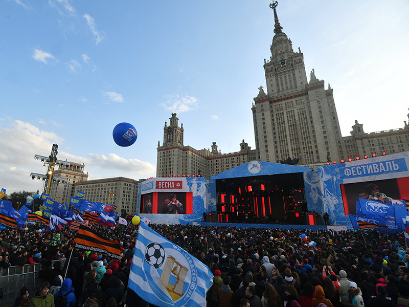 На студенческом фестивале "Весна", посвященном третьей годовщине присоединения Крыма к России, присутствовали не только школьники и активисты патриотических движений, но и платная массовка. Объявления о наборе участников, как сообщает РБК, были размещены на специальных ресурсах в интернете, а откликнувшимся "патриотам" предлагалась скромная плата - 400 рублей на руки.