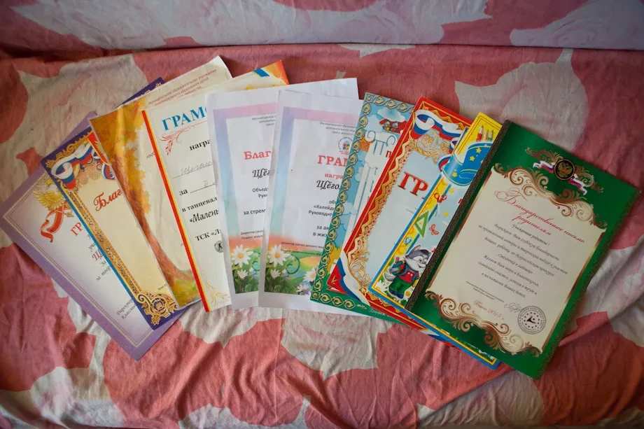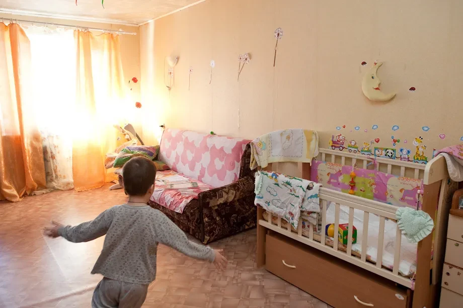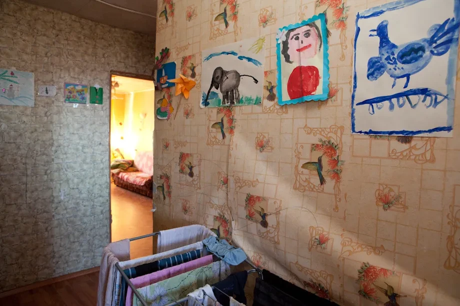 В кухне на тарелке намыты яблоки, мандарины, бананы. На сушилке — чистое белье. Полы вылизаны. Шикарной мебели и ковров в квартире нет, но игрушками дом завален. Обои новые, хотя Рада их не жалеет: все стены украшены поделками и рисунками, которые подарили ей дети.