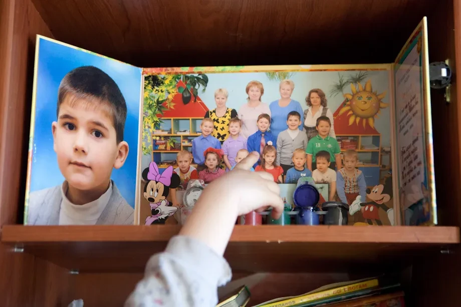 На ней висит 7-месячный Родион, рядом мартышкой скачет 4-летний Виталик, но бабушка как-то управляется со всем: отвечает на телефонные звонки, моет кипятком упавшую на пол соску, находит и показывает дневник, рисунки, поделки и фотографии Вани.