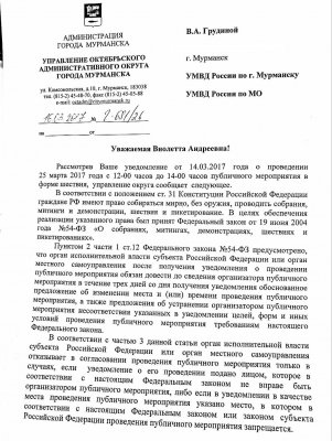 Власти Мурманска отклонили уведомления о проведении трех шествий в центре города, темой которых был протест против завышенной стоимости коммунальных услуг, продовольствия и проезда в общественном транспорте. Об этом ОВД-Инфо сообщила одна из организаторов акции Виолетта Грудина.