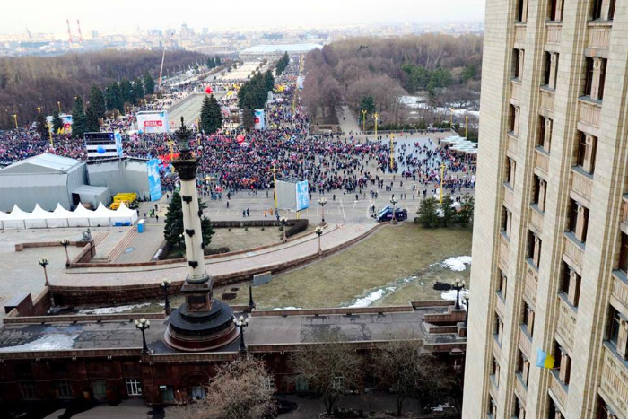 Аспиранта исторического факультета МГУ задержали и побили после того, как он вывесил из окна общежития флаг Украины во время концерта «Весна» в честь присоединения Крыма на Воробьевых горах.