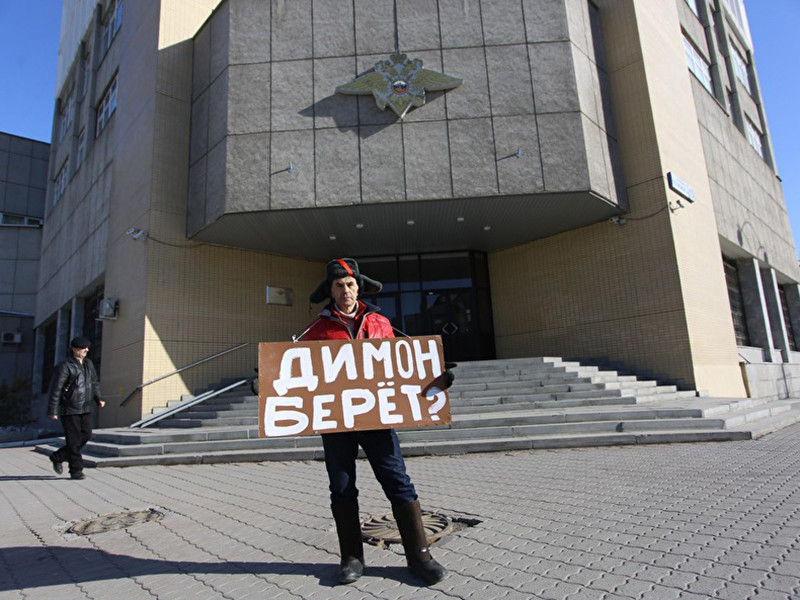 В Екатеринбурге экс-майор ФСИН вышел на пикет с плакатом "Димон берет?"