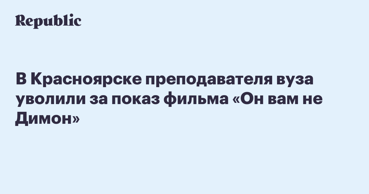В Красноярске преподавателя вуза уволили за показ фильма «Он вам не Димон»