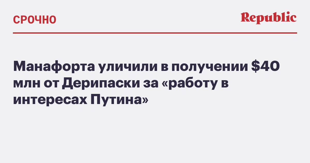 Бывший руководитель предвыборного штаба Дональда Трампа Пол Манафорт секретно работал на российского миллиардера Олега Дерипаску в интересах президента РФ Владимира Путина. Об этом сообщает Associated Press.