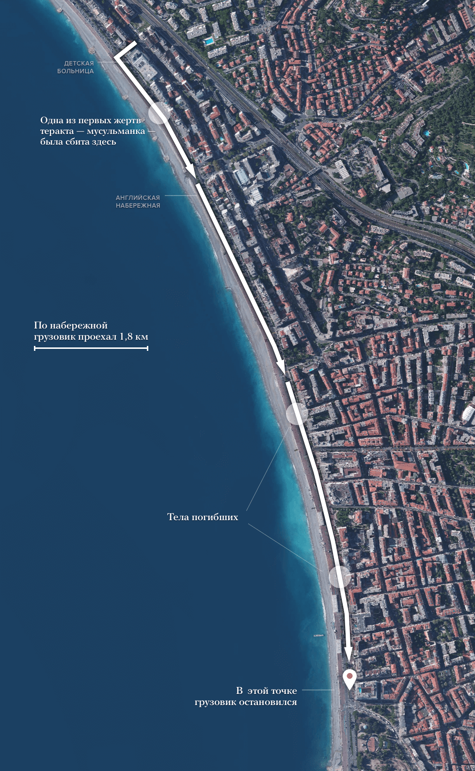 Спутниковый снимок: DigitalGlobe / Getty Images Теракт в Ницце. Карта.