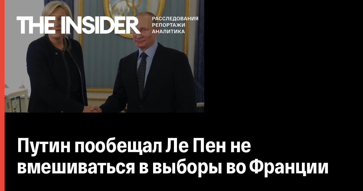 Путин пообещал Ле Пен не вмешиваться в выборы во Франции