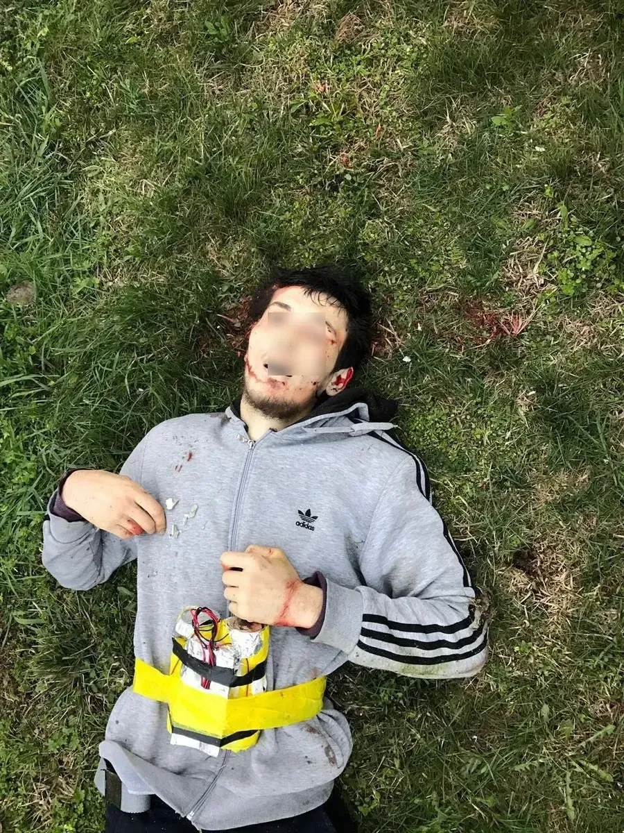 Отдельный интерес представляет фотография убитого чеченца с муляжом самодельного взрывного устройства (СВУ). (Тот факт, что СВУ были не настоящими, официально подтвердил Национальный антитеррористический комитет).