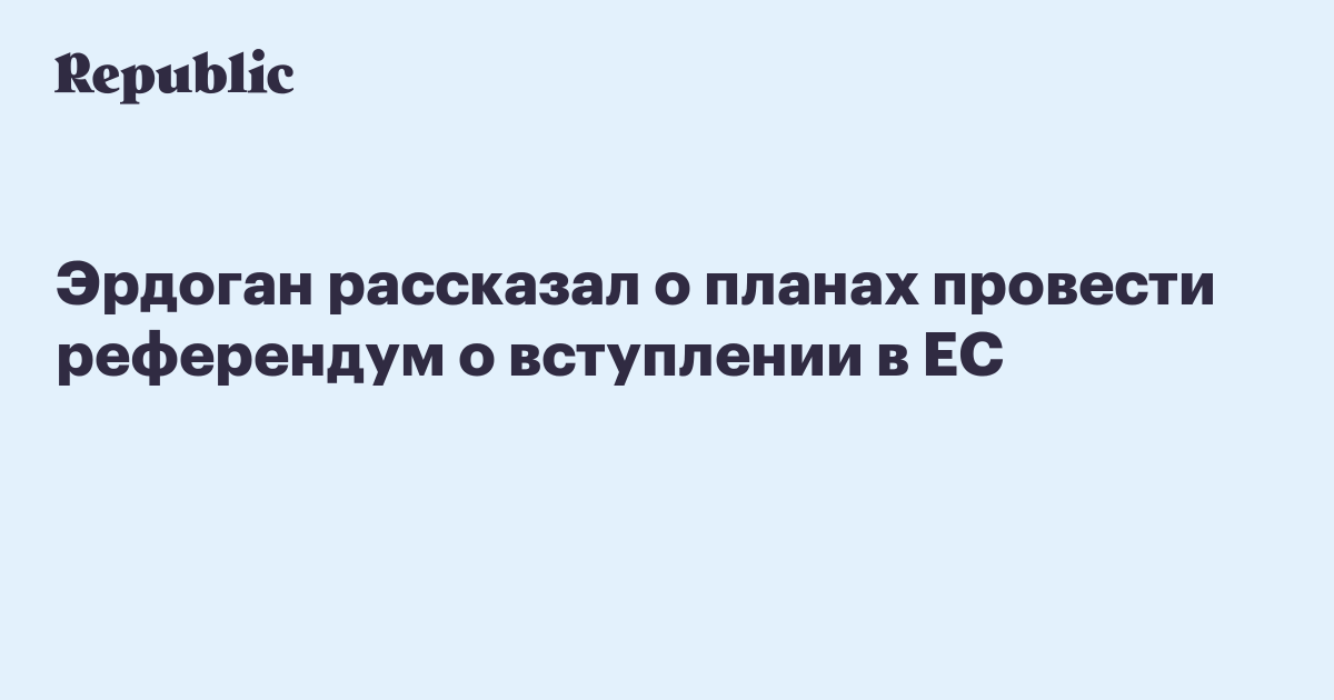 «Сейчас мы проводим референдум 16 апреля, после этого мы можем назначить второй о переговорах о вступлении в ЕС и посмотреть, что решит народ», – сказал Эрдоган.