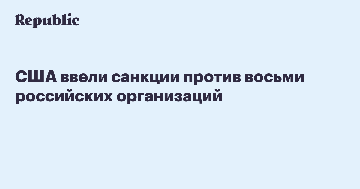 США ввели санкции в отношении восьми российских организаций за нарушение американского законодательства о нераспространении вооружения в отношении Ирана, КНДР и Сирии. Об этом узнал ТАСС от представителя администрации США.