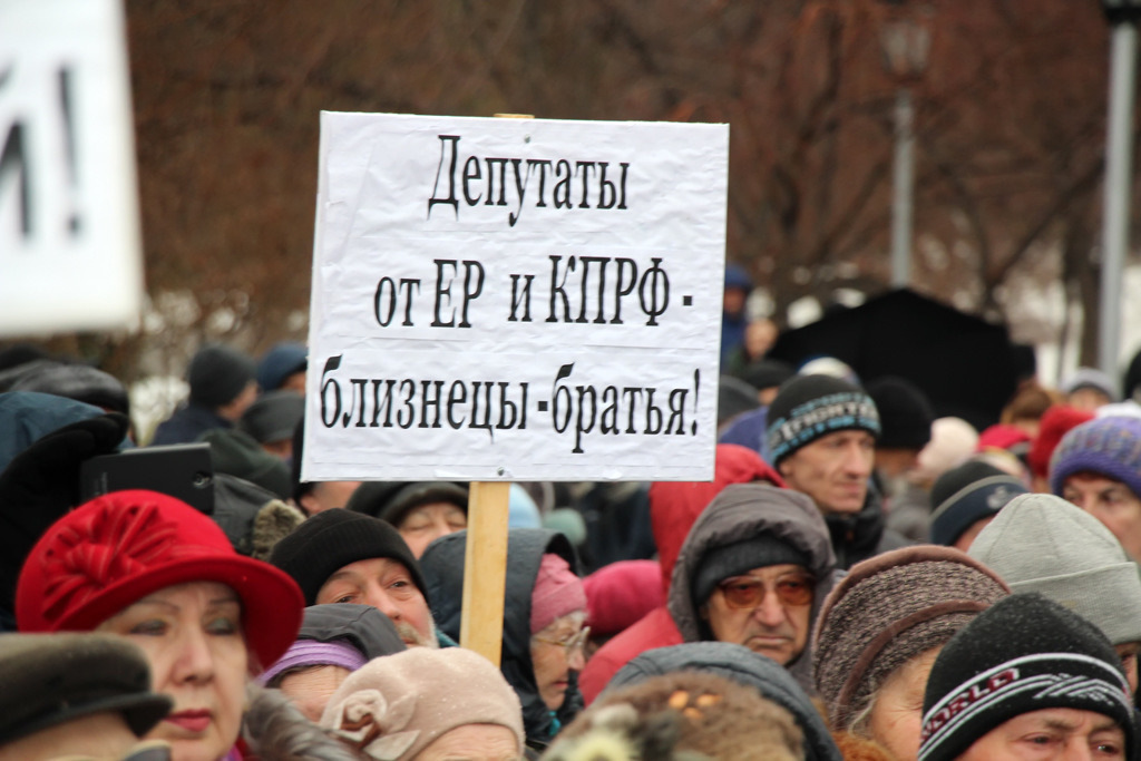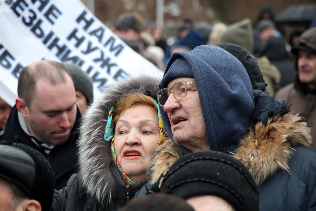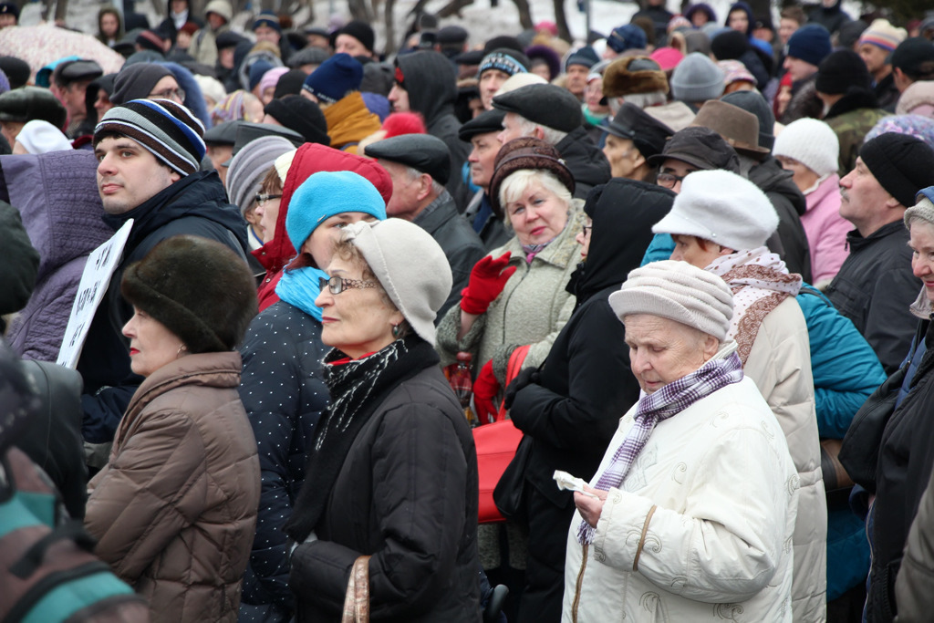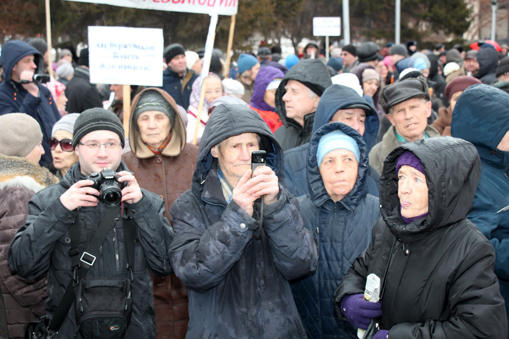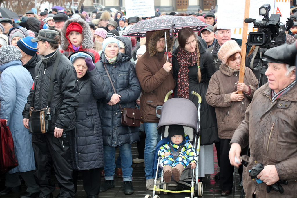 Организованный Комитетом протестных действий митинг собрал более тысячи человек, которые пришли на площадь Ленина, несмотря на нулевую температуру и моросящий дождь.