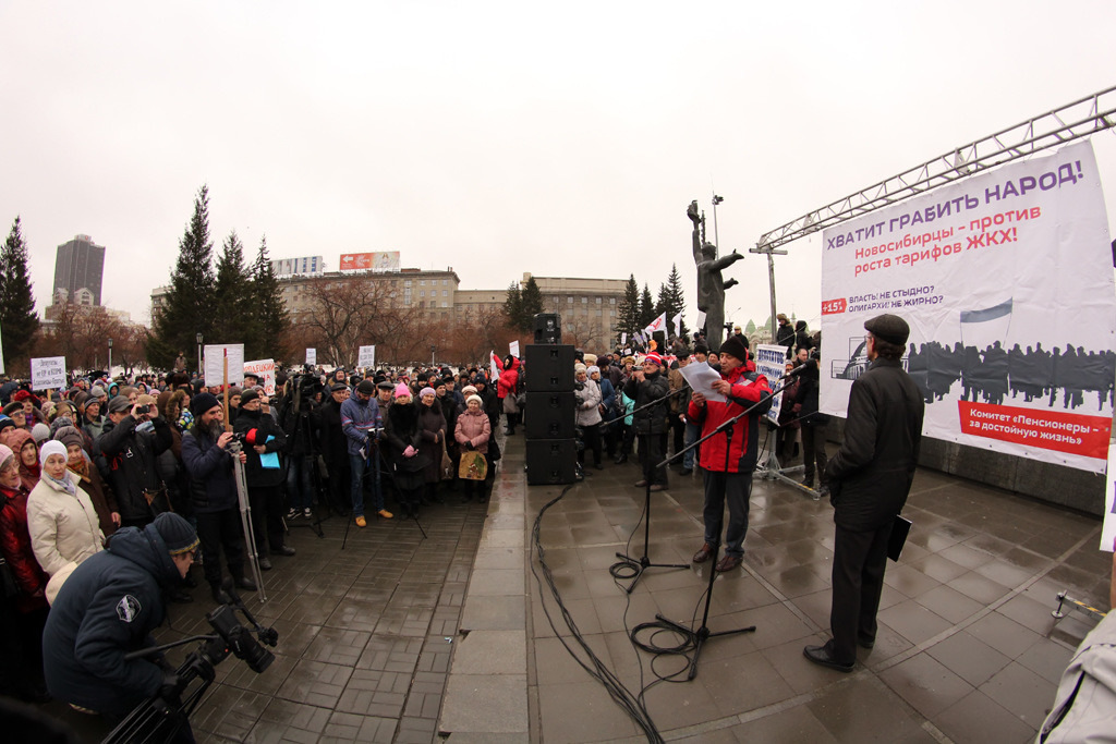 «Мы собрались, чтобы сказать решительное „нет“ несправедливому, грабительскому, политически ошибочному решению наших региональных властей о повышении коммунальных тарифов, — открыл митинг представитель Комитета протестных действий Сергей Крупенько (он же — главный борец за трезвость в Новосибирской области). — Вот уже три месяца возмущенные горожане проводят свои акции протеста. Что изменилось за это время? Сумели ли региональные власти довести убедительные аргументы в пользу своего решения? Нет, этого не произошло. Наоборот, все запутались. Идет сплошная ругань между ветвями власти. Пресса ничего не говорит о наших акциях протеста! Только отдельные интернет-сайты че-то рассказывают. Власть старается замолчать наш протест. Она надеется, что протест сойдет на нет. Но он не сойдет. Раз за разом собирается всё больше людей».