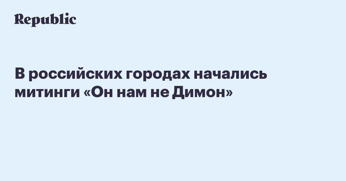 В Хабаровске, Владивостоке и Барнауле 26 марта начались митинги «Он нам не Димон», на которых участники призывают к борьбе с коррупцией и расследованию деятельности премьер-министра РФ Дмитрия Медведева. Ссылки на трансляции с мероприятий в своем твиттере опубликовал политик Алексей Навальный. Позднее аналогичная акция стартовала в Кемерове.