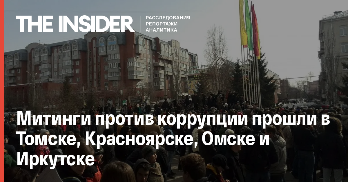 Митинги против коррупции, которые сегодня проходят по всей России, состоялись в Томске, Красноярске, Омске и Иркутске. Онлайн-трансляцию из всех городов обеспечивает Фонд борьбы с коррупцией.