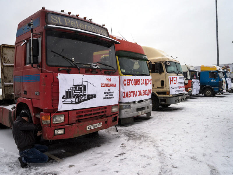 Ранее дальнобойщики выразили недоверие президенту РФ Владимиру Путину и назначили на конец марта общероссийскую бессрочную забастовку. В Петербурге акция дальнобойщиков против системы "Платон" проходит на Московском шоссе. На обочине трассы в обе стороны припарковалось чуть более 50 грузовых и легковых машин.