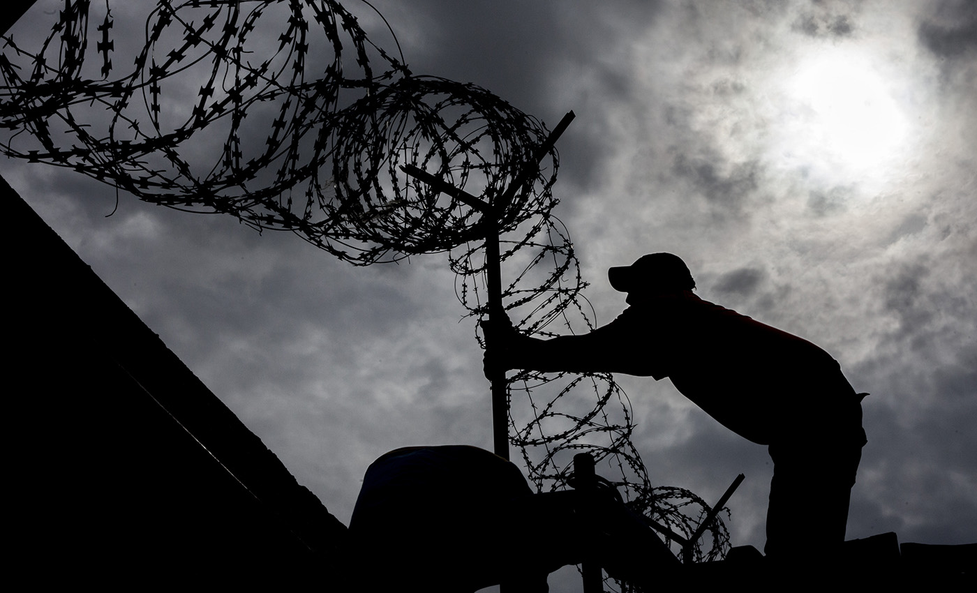 Рабочие монтируют ограждение в центре временного содержания иностранных граждан в Санкт-Петербурге. Фото: Алексей Даничев / РИА «Новости»