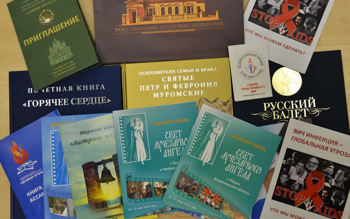 фонд прислал в редакцию посылку: папку с брошюрами об опасности ВИЧ, памятной книгой о людях, проявивших мужество при пожарах, под названием «Горячее сердце» и еще стопкой печатной продукции