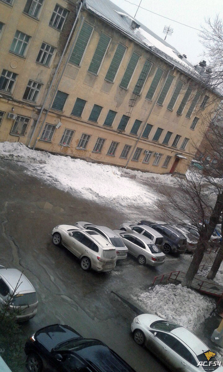 Снег сошел с крыши здание на Красном проспекте, 53. Фотографии опубликовало сообщество «АСТ-54» «ВКонтакте».