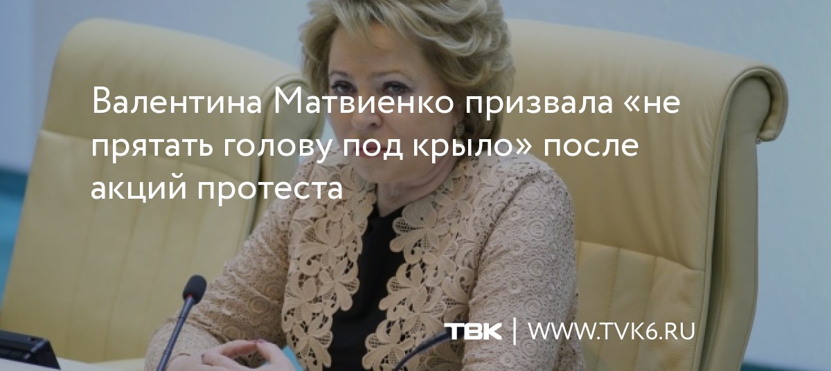Валентина Матвиенко призвала «не прятать голову под крыло» после акций протеста