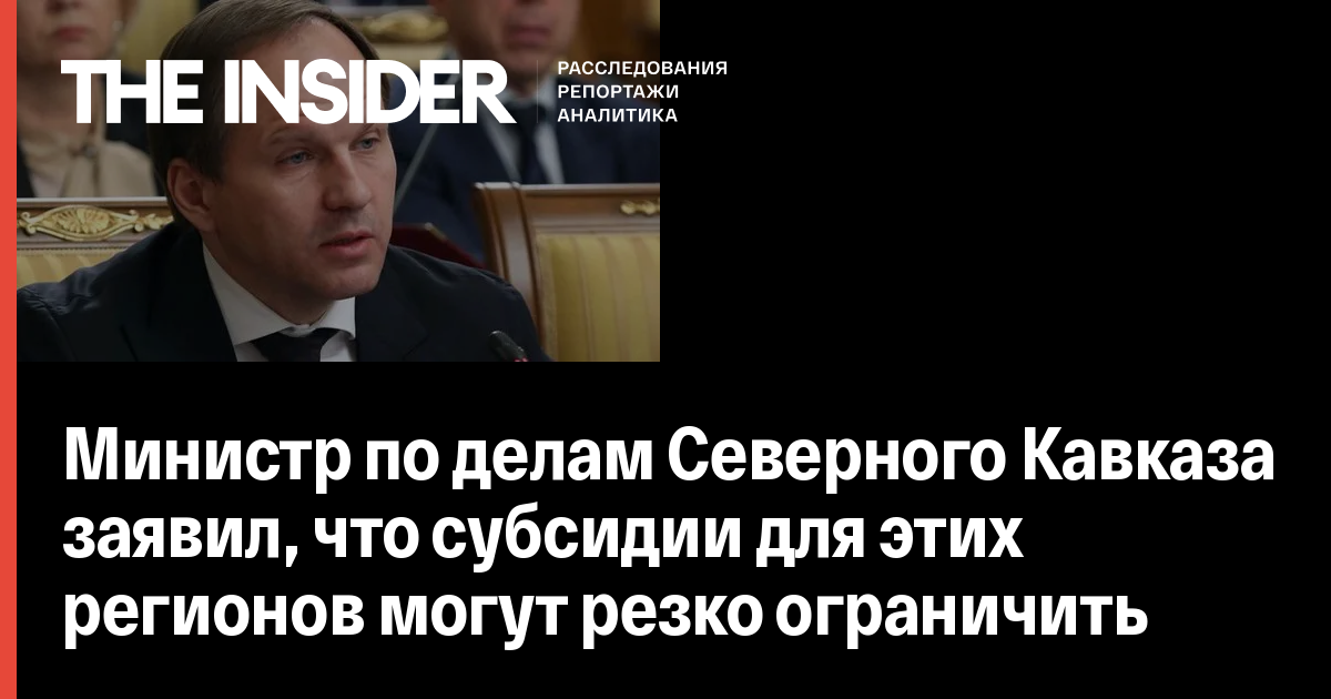 Министр по делам Северного Кавказа заявил, что субсидии для этих регионов могут резко ограничить