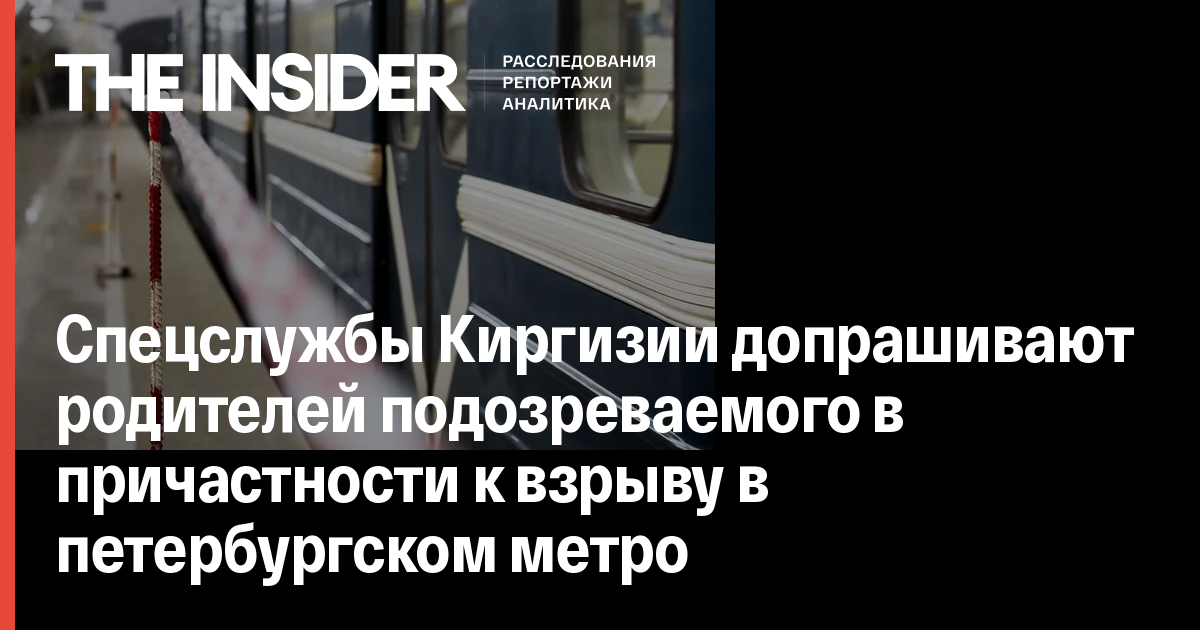 «Родителей виновника теракта в метро в Санкт-Петербурге допрашивают в Ошском областном управлении ГКНБ [Госкомитета нацбезопасности]. Их доставили туда вчера поздно вечером», — говорится в сообщении агентства.