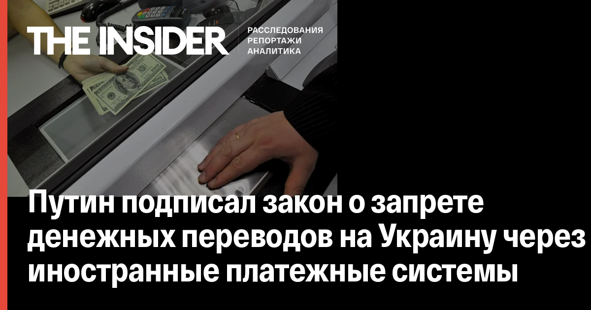 Путин подписал закон о запрете денежных переводов на Украину через иностранные платежные системы
