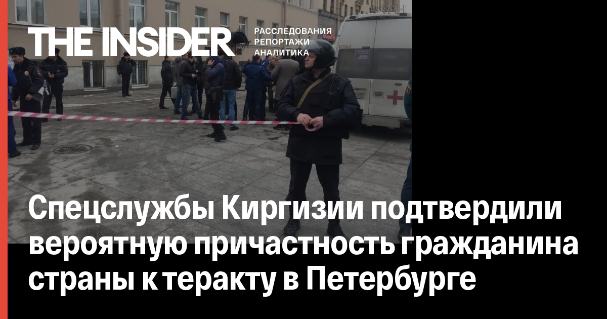 Спецслужбы Киргизии подтверждают, что вероятным исполнителем теракта в метро Санкт-Петербурга является уроженец Киргизии, гражданин России. Об этом сообщает «Интерфакс».