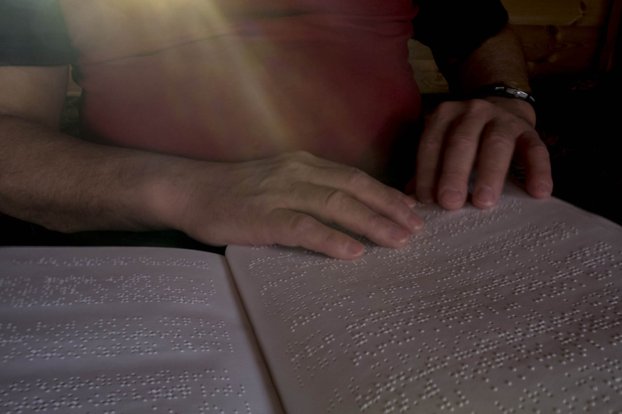 На экране компьютера — толстый сурок и стихотворение — дурацкое, совершенно не запоминающееся. Такие обычно читают в детских садах на всяких «праздниках весны», что-то про солнечный денек, ветерок, грибок. С «сурком» рифмуется не так много слов. Алевтина, Аля, пожилая женщина с яркими голубыми глазами внимательно ведет пальцем по брайлевской строке компьютерной приставки. Посередине застывает, хватает за руку Константина, своего преподавателя, вскрикивает, жестикулирует. Тот тоже проводит рукой по строчке, потом успокаивающе гладит Алю по плечу: «Правильно, правильно!»