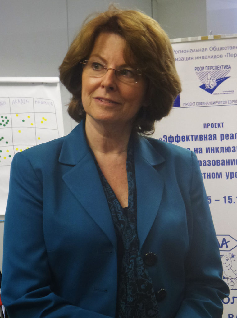 «Когда речь заходит о создании инклюзивной системы в общеобразовательной школе, администрация, как правило, сталкивается с таким количеством задач, что у них просто опускаются руки», — так Кэрол Квирк начинает свое выступление на семинаре «Эффективная реализация права на инклюзивное образование на местном уровне» в РООИ «Перспектива».