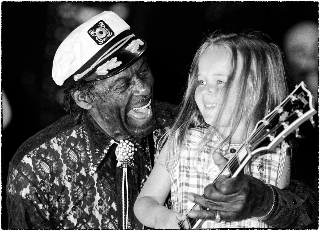 Берри всегда в конце выступлений вызывал на сцену детей и молодежь, чтобы они танцевали. Ему понравилась эта девчонка, он стал играть с ней. Двадцать лет я искал ее, нашел только в марте этого года. Ее зовут Кристина, ей сейчас 25. Мы встретились, я подарил ей эту фотографию с автографом самого Берри.