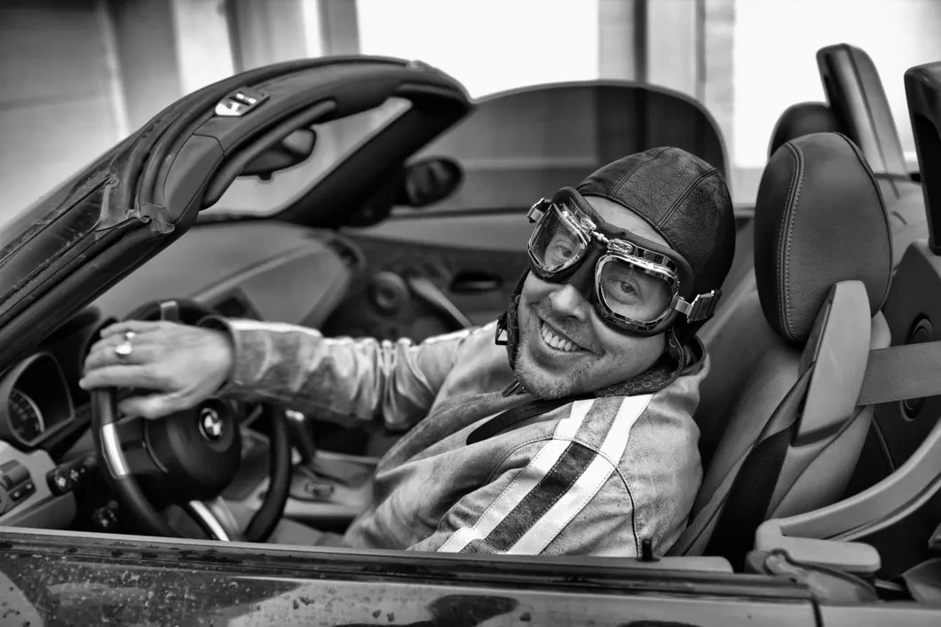 Праздновали день рождения друга в загородном доме. Макаревич не так часто приезжает на дни рождения и праздники, у него мало времени. А тут – приехал к нам. У Андрея тогда была машина с откидным верхом, и когда он собрался уезжать, надел летчицкие очки и шлем.