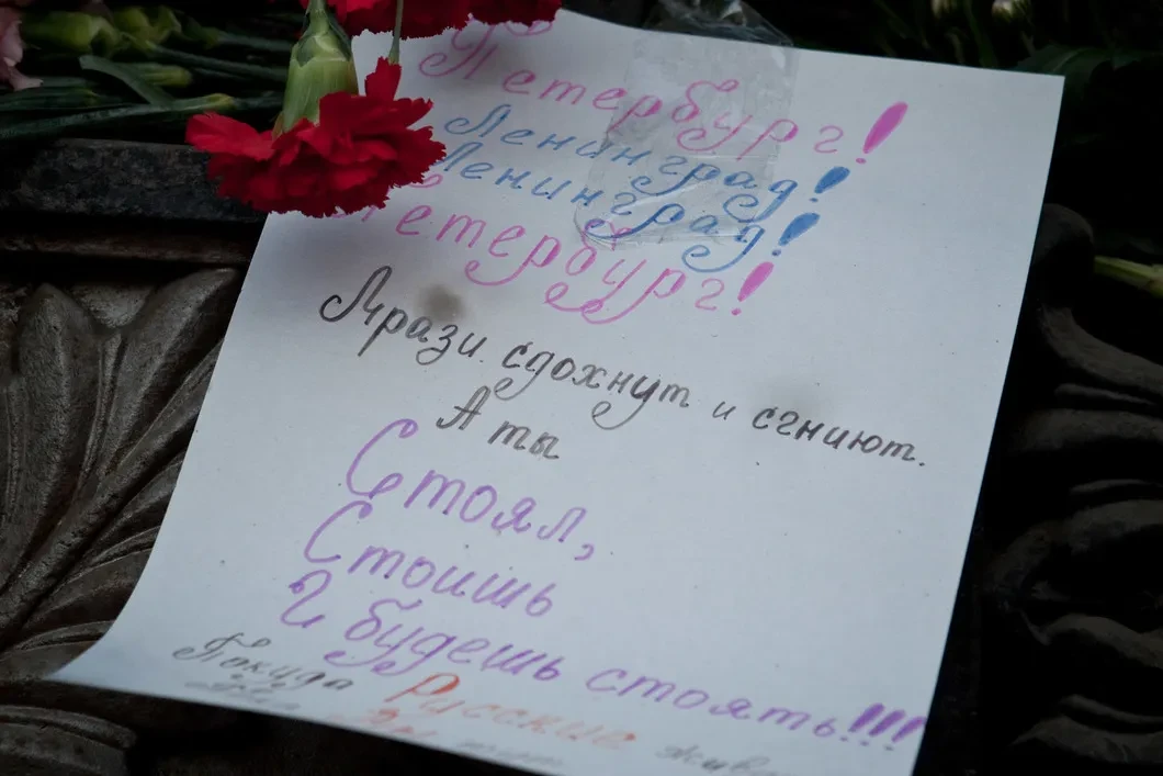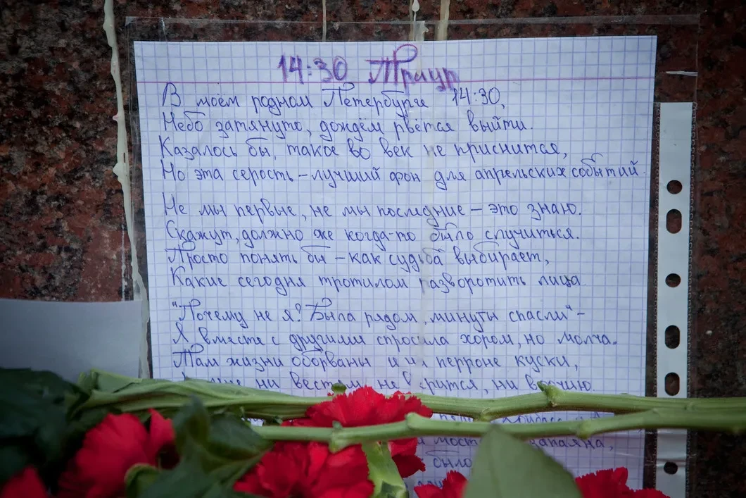 Что пишут петербуржцы в записках на месте теракта 3 апреля. Фотографии