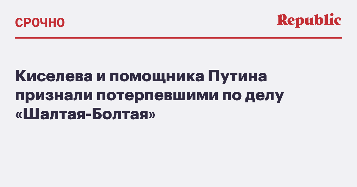 Киселева и помощника Путина признали потерпевшими по делу «Шалтая-Болтая»